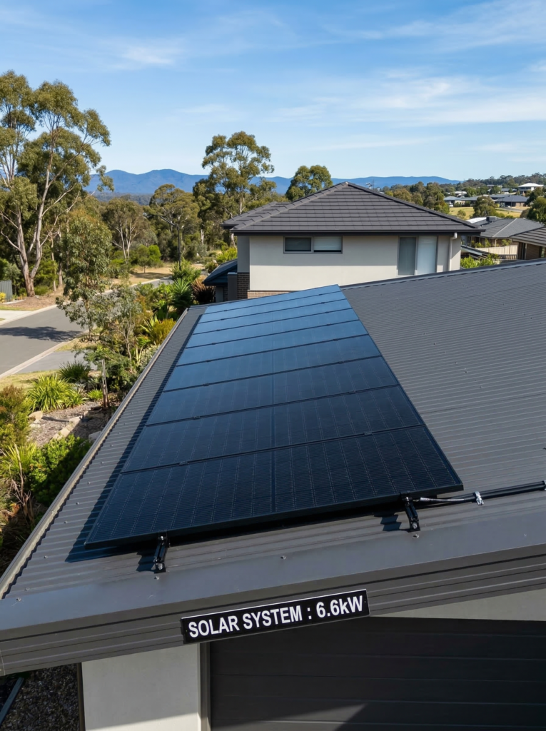 A 6.6kW solar system is one of the most widely installed residential solar sizes across Australia. Designed for medium to large households, it typically consists of 15–18 high-efficiency solar panels paired with a reliable 5kW inverter. On a standard Queensland sunny day, a 6.6kW system can generate 24–28 kWh of electricity — enough to comfortably cover the daily energy needs of a busy family home, including air conditioning.